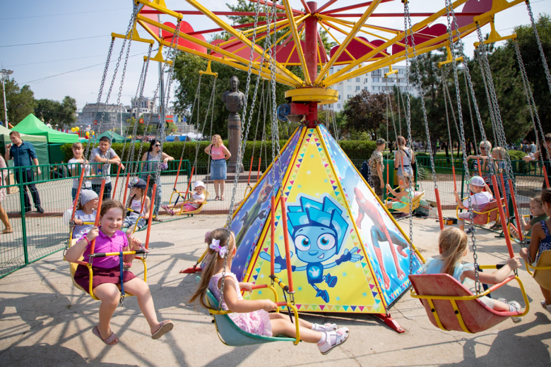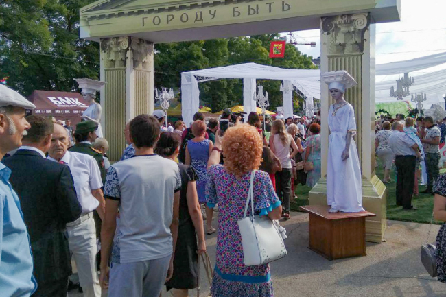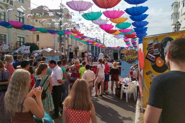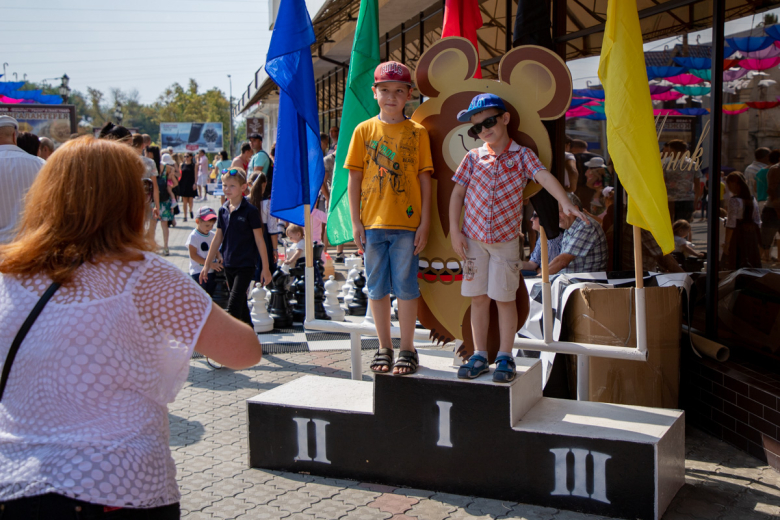 Неподалёку действовали и другие локации. Все желающие могли попробовать свои силы в масштабных шахматах, узнать, что такое «Пионерия», увидеть модников 90-х и даже сделать прическу в стиле этих годов. Кстати, бендерское подворье организовало и большой детский надувной городок абсолютно бесплатно.