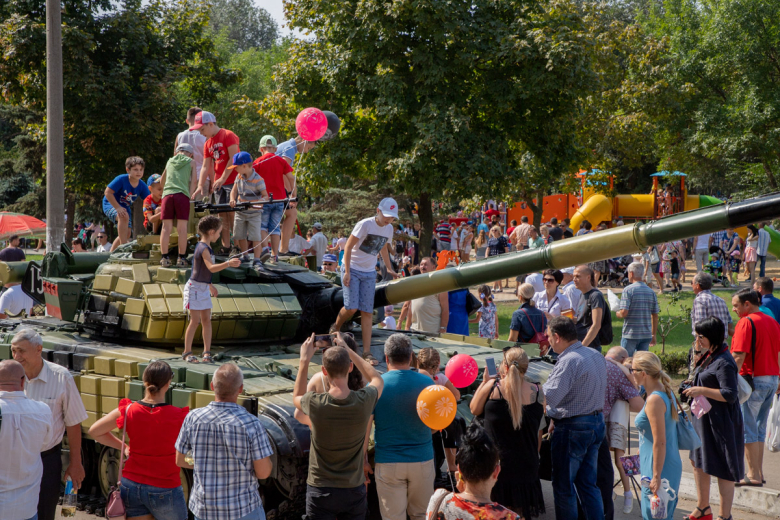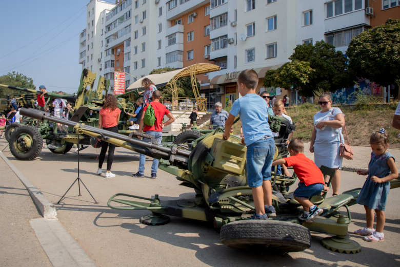 На набережной тоже было на что посмотреть. Множество малышей и их родителей буквально заполонили сквер де Волана. Детвора разбилась на несколько секторов, где знакомилась с военной техникой, лазила по новому детскому городку, веселилась на импровизированной танцплощадке, занималась спортом.
