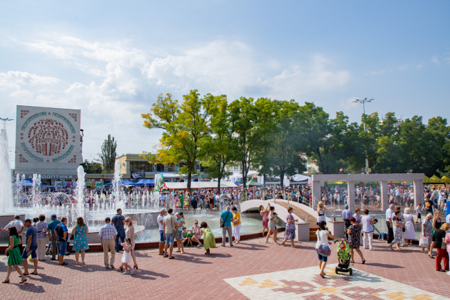 Неподалёку от центральной парикмахерской расположилось подворье Каменского района и города Каменки. Зажигательными песнями, а также хлебом-солью приветствовали каменчане приднестровцев и гостей республики.