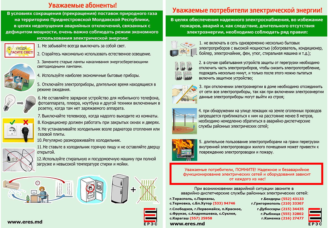 Соблюдайте рекомендации ЕРЭС, чтобы избежать аварийных и чрезвычайных ситуаций.