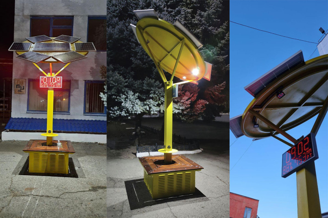 Современная установка работает автономно за счет использования солнечных панелей и не требует дополнительных источников питания, а в вечернее время на ней автоматически включается освещение, говорится на сайте ЗАО «Электромаш».