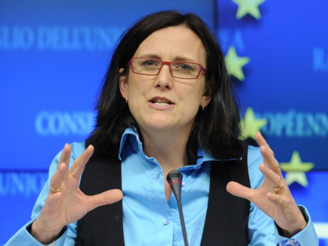 «Так как до сих пор нет никакого решения, Европейский союз пока не предпринял официальных шагов, - сказала она на пресс-конференции в среду в Брюсселе. - Сегодня утром коллегия [Еврокомиссия] рассматривала три возможных подхода, чтобы защищать наши интересы в случае, если США дадут дальнейший ход пошлинам».