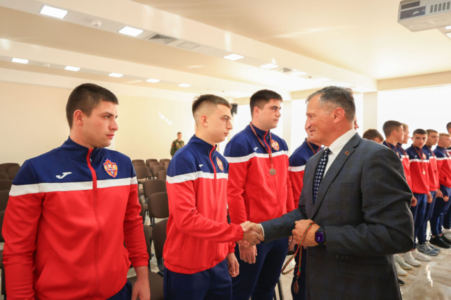 Футболистам вручили медали, грамоту и кубок. После торжественной церемонии спортсменам провели экскурсию по Военно-историческому музею Вооруженных сил, где рассказали о событиях военной истории Приднестровья.