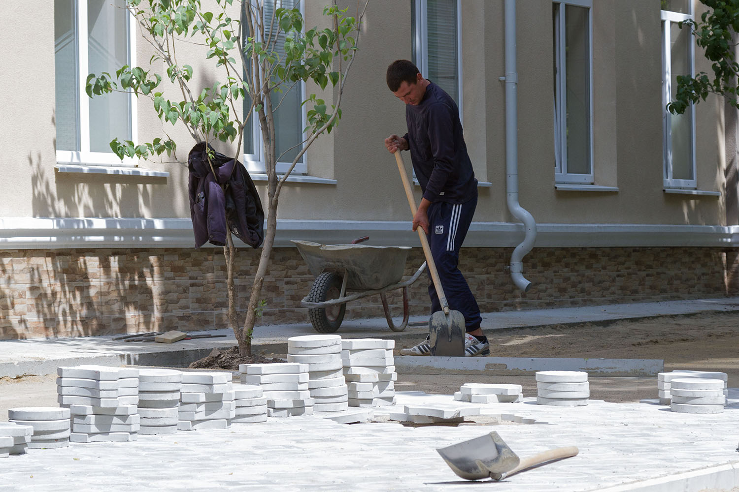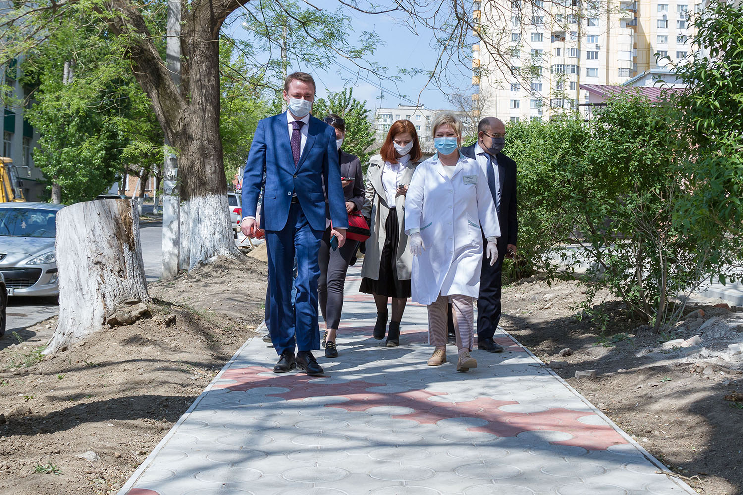 Завершаются работы по благоустройству на данном объекте. Плитка уложена вдоль диспансера, осталось закончить укладку внутри двора. Есть вопросы по облагораживанию части прилегающей территории, смежной с тротуарной дорожкой, которую отремонтировали в рамках Дорожного фонда. Глава Правительства нацелил привести пешеходные зоны в надлежащий вид, чтобы вся территория вокруг здания была комфортной для передвижения.