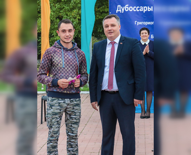 Дубоссары, 27 октября. /Новости Приднестровья/. Глава дубоссарской госадминистрации Руслан Чабан в День города вручил ключи от квартиры сироте. Её обладателем стал Георгий Татару. Он на протяжении нескольких лет стоял в очереди на получение жилья, сообщается на сайте местной госадминистрации.