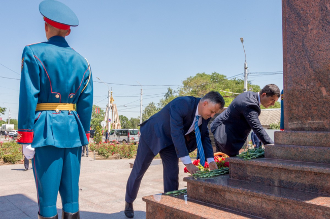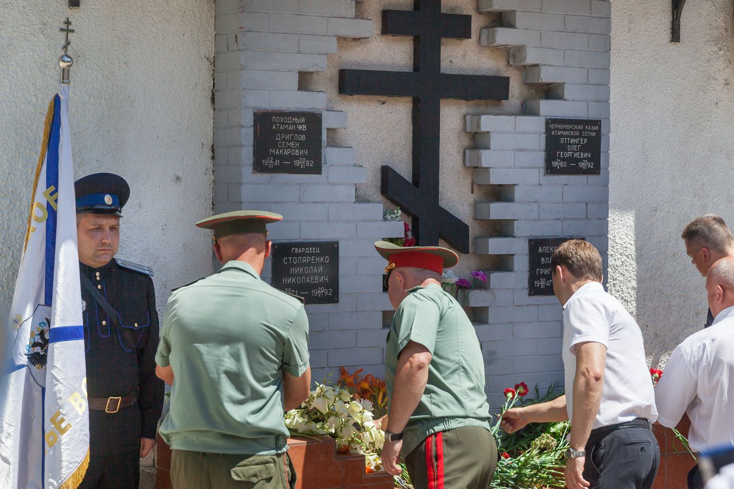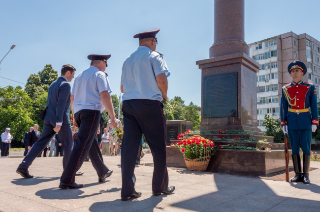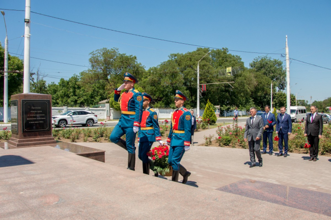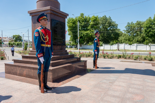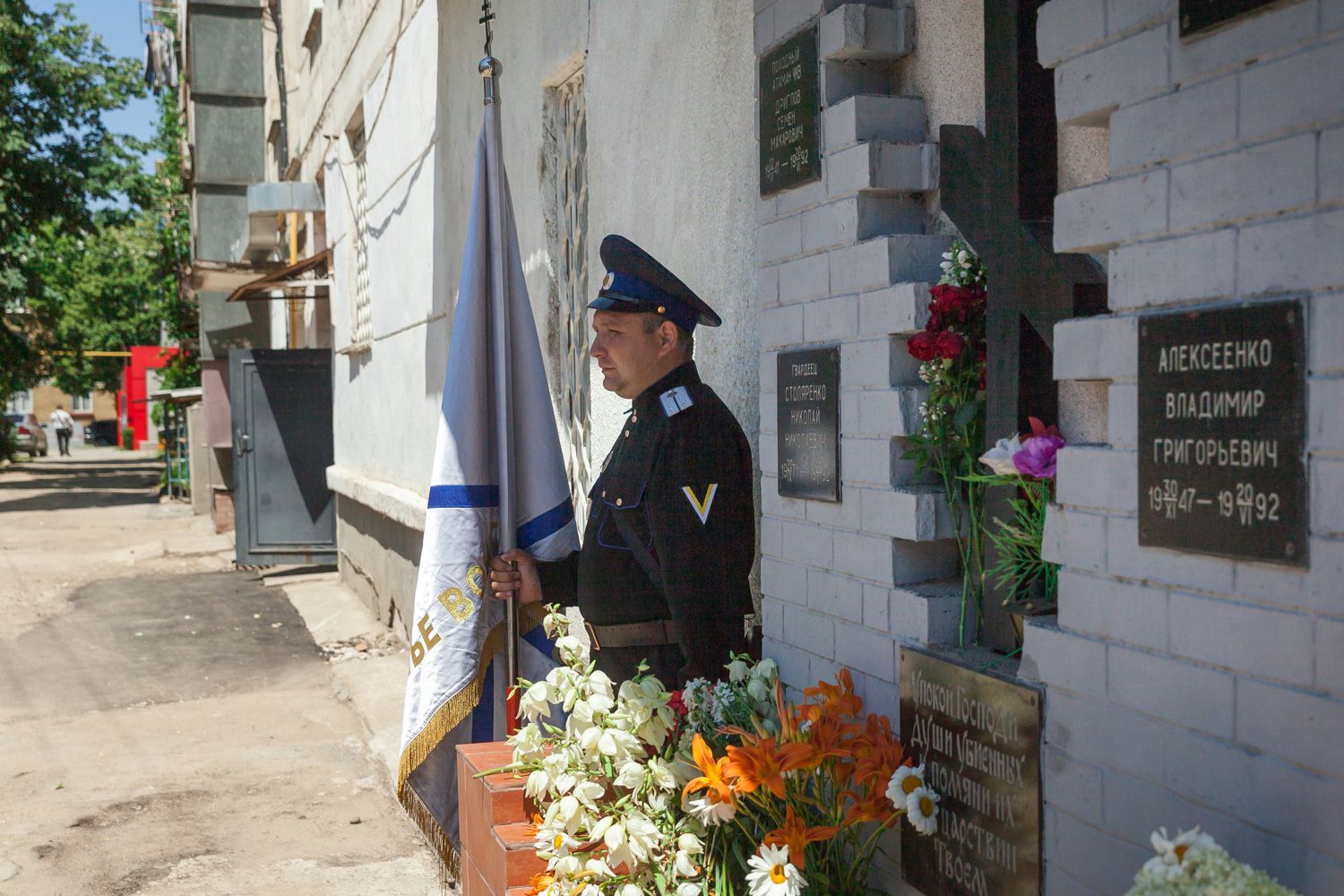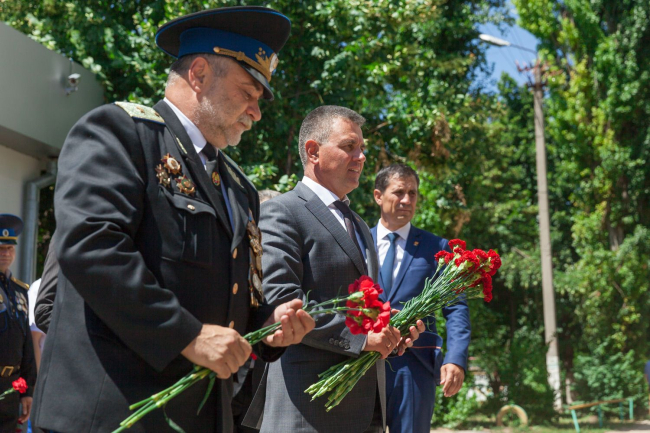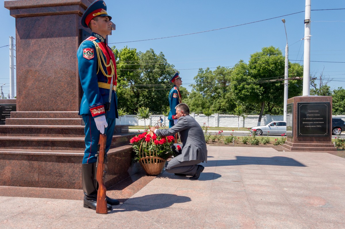 Также глава государства возложил цветы к памятной плите казакам, погибшим при защите горисполкома в 1992 году. Этот монумент напоминает о трагическом событии, случившемся в ночь на 20 июня. Тогда во дворе жилого дома рядом с площадью Освобождения погибли казаки, защищавшие город. Всего жертвами молдавской агрессии против Приднестровья стали 92 казака. Среди них – 27 добровольцев.