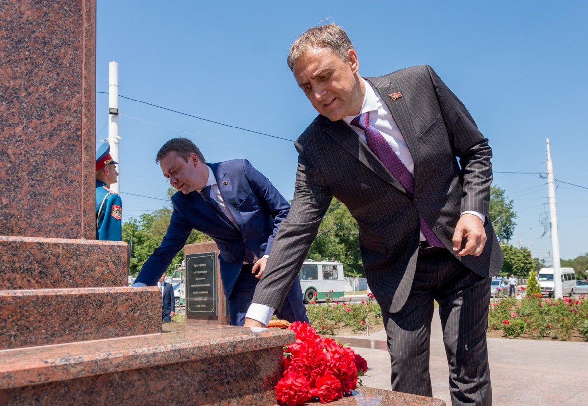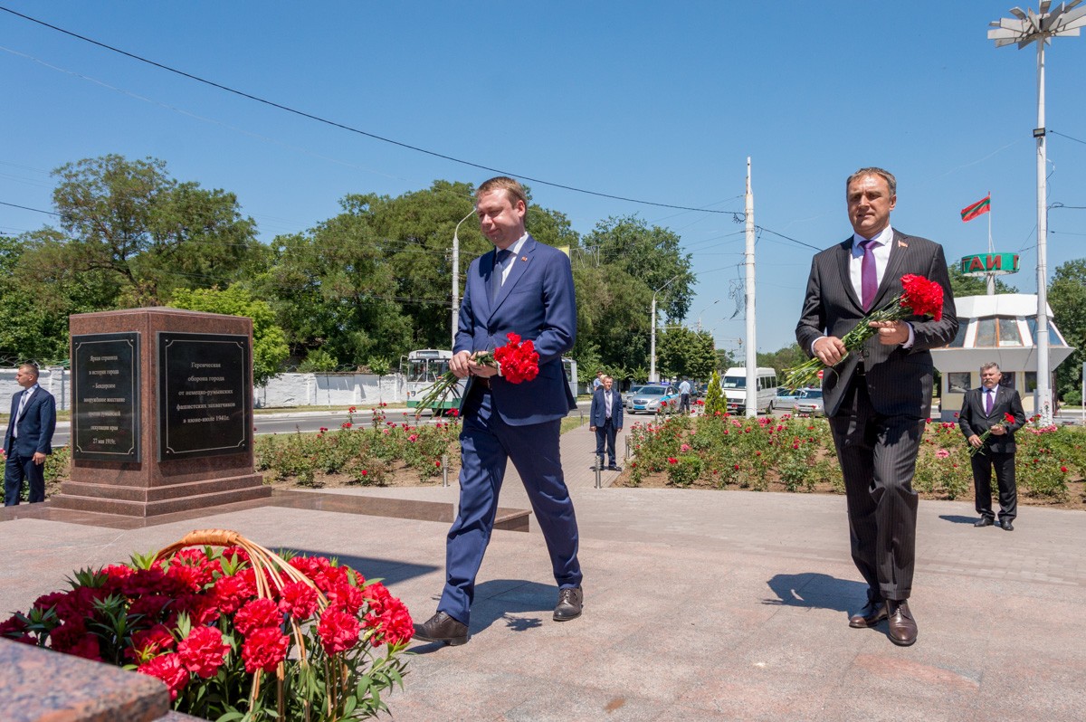 Бендеры, 19 июня. /Новости Приднестровья/. В День Бендерской трагедии прошло торжественное возложение цветов к памятному знаку «Город воинской славы». Гвоздики в память о погибших героях возложил Президент ПМР Вадим Красносельский и представители всех ветвей власти.