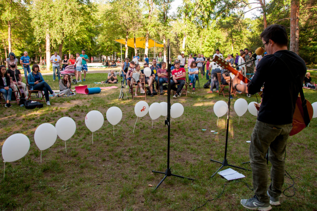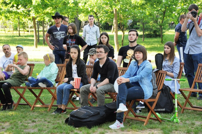 Теплым весенним вечером на поляне парка – это была импровизированная сцена - собрались музыканты и любители. Они в непринужденной, можно даже сказать, по-домашнему теплой атмосфере играли на гитаре и пели песни как знаменитых исполнителей, так и собственного сочинения. Первым взял в руки гитару и исполнил известный хит сам организатор – Роман Санду.
