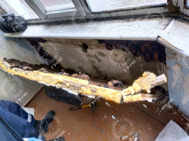 Когда сотрудники ГУпЧС вскрыли деревянные панели, которыми был обшит балкон, и доски пола, то обнаружили там около 500 летучих мышей. Животные уже впали в спячку и были не очень активными.