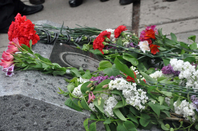 К могиле Николая Остапенко возложили цветы.