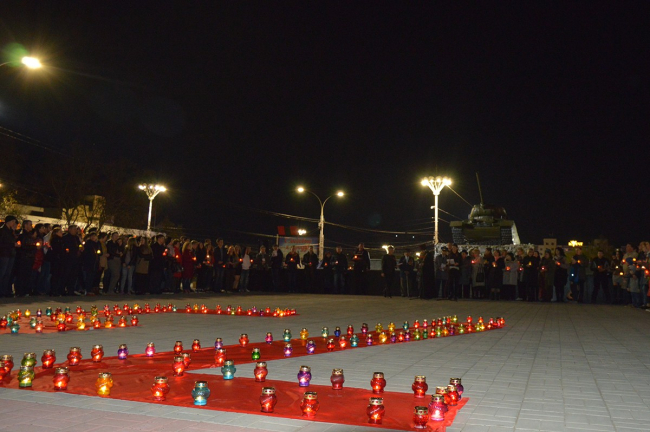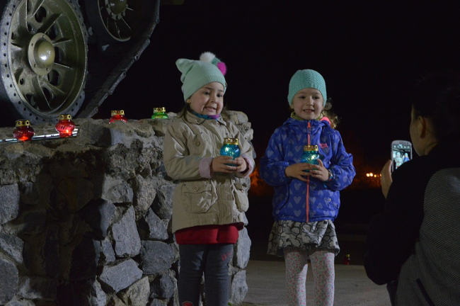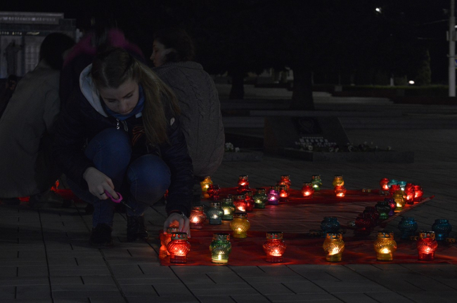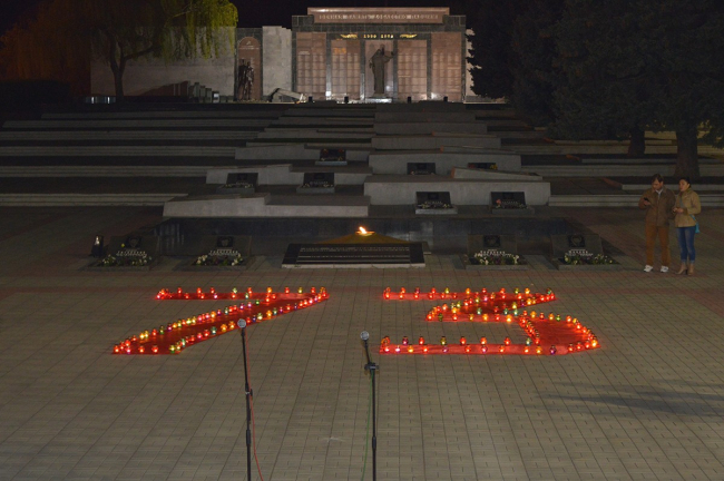 Память тех, чьи жизни унесла война, почтили минутой молчания, а затем собравшиеся выложили из зажженных лампад огромную цифру — 73, — символизирующую количество лет прошедших с момента освобождения Тирасполя от оккупантов.