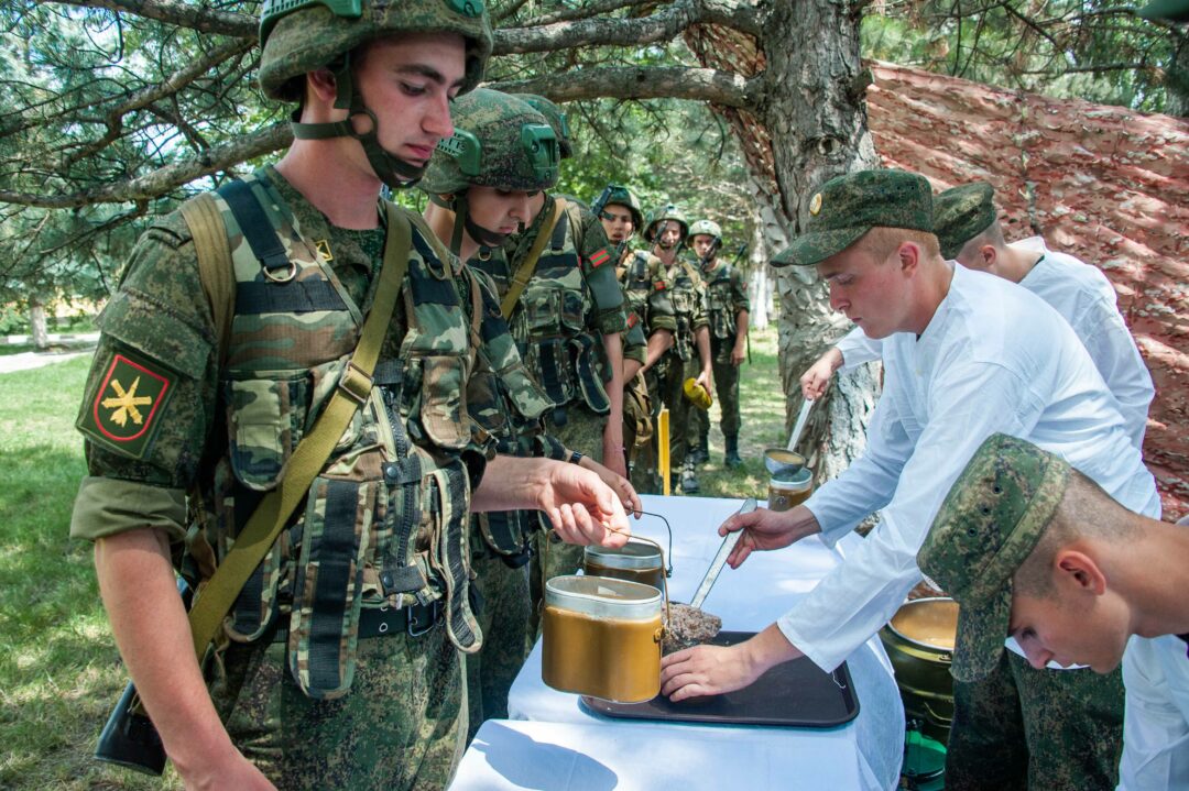 После выполнения нормативов новобранцев ждал сытный обед в полевых условиях.