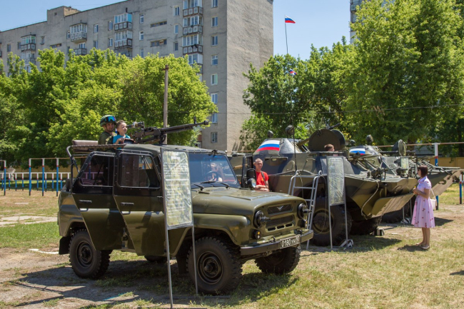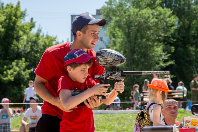 «Это новое развлечение, которое мы добавили в этом году. Здесь у нас можно пострелять из пейнтбольного маркера, ещё мы поставили на специализированную площадку современную технику, которая стоит у нас на вооружении. А также решили показать исторический парк «Партизанская деревня», который работает с 9 мая. Есть, конечно, и традиционные конкурсы», – рассказала главный распорядитель праздника Домовёнок Алексей.