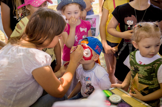 Это аквагрим, турники, стол для юных художников и небольшая площадка для метких стрелков дартс.