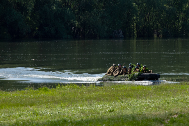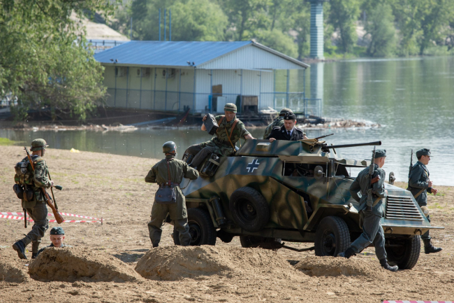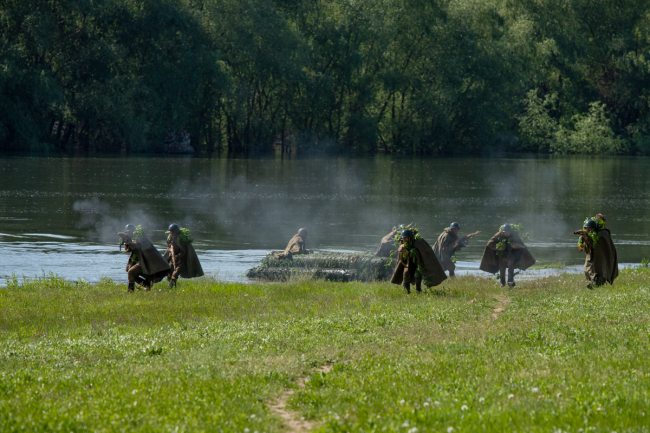 Прорыв так называемого «Восточного вала» - системы укреплений отступавших немецких войск - можно вносить в учебники по военному искусству. Как напоминание о том, что за Великой Победой стоит личный подвиг каждого советского война, на городском пляже был продемонстрирован эпизод форсирования Днепра небольшим отрядом из 14 человек, которому удалось выбить из укреплений целую роту немцев.