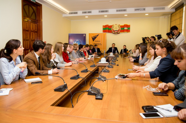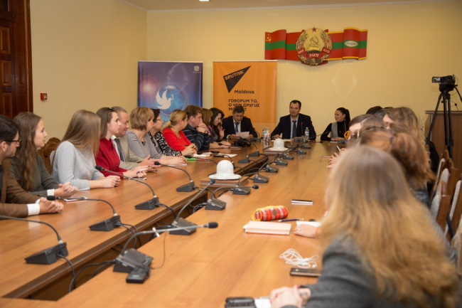 Приднестровским журналистам удалось пообщаться с генеральным директором радиостанции «Говорит Москва» Владимиром Мамонтовым, руководителем корпоративного учебного центра РИА «Новости» Олегом Щедровым, журналистами Международного информационного агентства Sputnik.