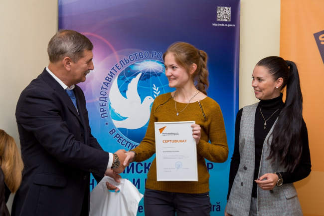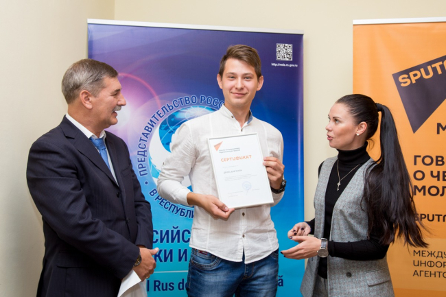 Тирасполь, 3 октября./Новости Приднестровья/. В стенах Приднестровского госуниверситета состоялась церемония награждения слушателей школы инновационной журналистики Sputnik. Журналистам вручили сертификаты и подарки по линии Россотрудничества.
