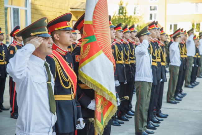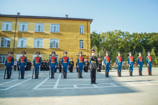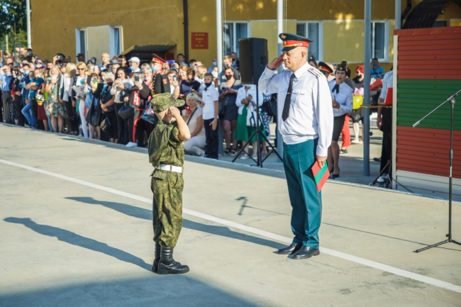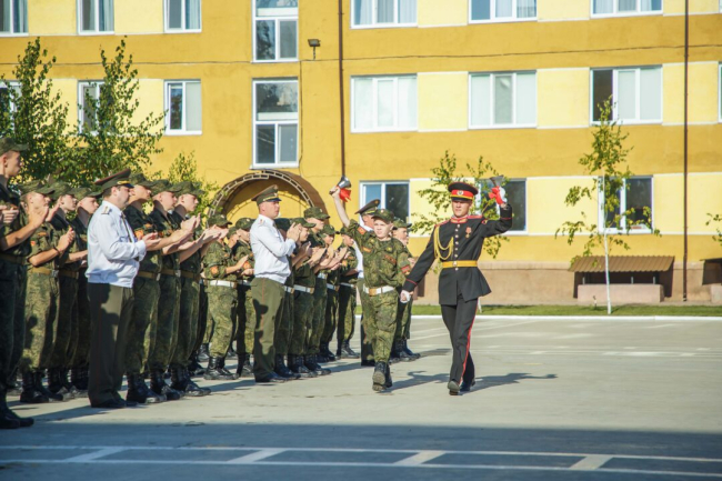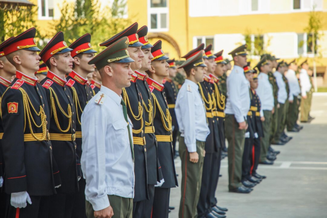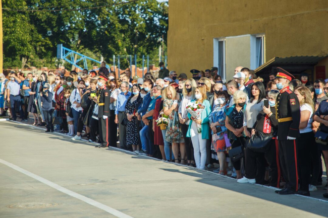 Со дня открытия в учебном заведении первый звонок звучит уже в пятый раз. В этом году за парты сядут 292 суворовца. В связи с ограничительными антикоронавирусными мероприятиями сегодня поздравления принимали новобранцы и выпускники – суворовцы 1-го, 5-го и 7-го курсов. В большую армейскую семью в этом году влились 82 новобранца. Сегодня первокурсники произнесли священную Клятву суворовца.