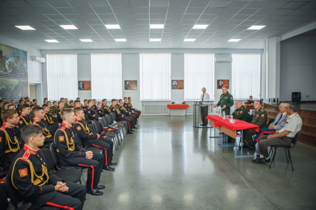 После торжественной линейки у суворовцев прошёл «Урок мужества», сообщает пресс-служба Минобороны.