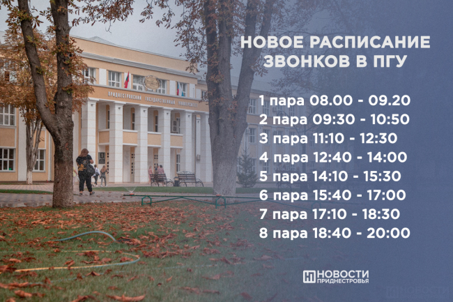 «Мы стараемся вернуться уже в допандемийный формат работы. В университете занятия всегда начинались с 8:00. Кроме того, у нас действует режим экономии электроэнергии, а в 8 утра уже светло. Второй момент: у нас обучение идёт по двум сменам, ряд структурных подразделений и курсов выходят на работу и учёбу во вторую смену. Такое решение будет оптимально учитывать интересы как тех, кто учится в первую смену, так и тех, кто во вторую, чтобы студенты не возвращались с пар глубокой ночью», – рассказала ИА «Новости Приднестровья» проректор ПГУ по образовательной политике и менеджменту качества обучения Оксана Еремеева.