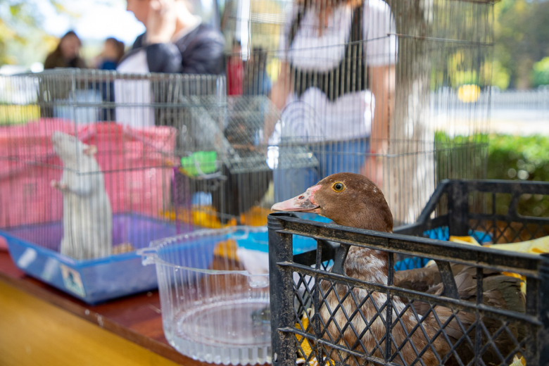 Настоящий живой уголок представил аграрно-технологический факультет. Здесь можно было не только посмотреть на улиток, бабочек и черепах, но и потрогать хомячков и кроликов. Мало кто из прохожих остался равнодушным.