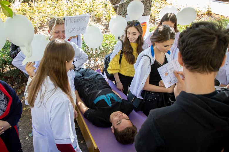 Медицинский факультет на своей площадке обучал всех желающих основам первой медпомощи. Также они подготовили рекомендации и пособия по здоровому образу жизни и другую полезную информацию.