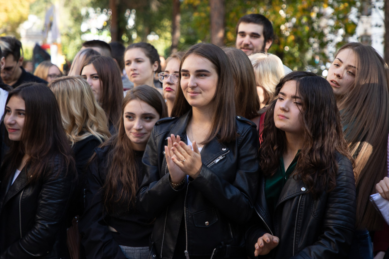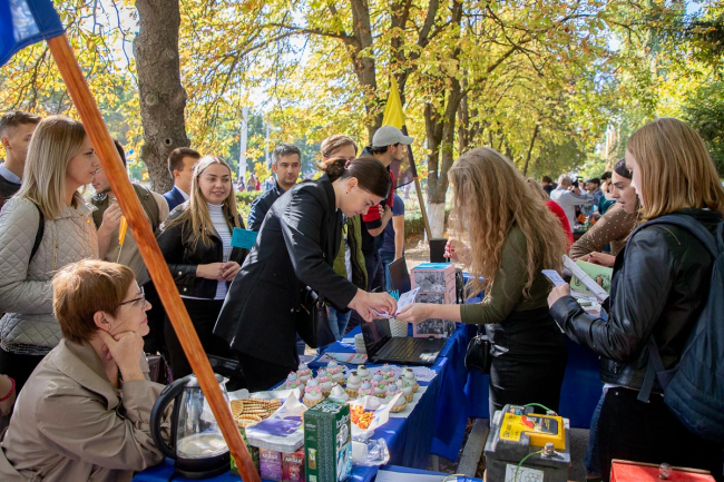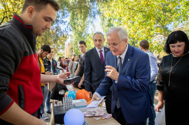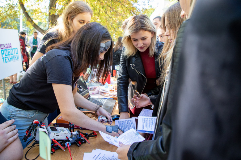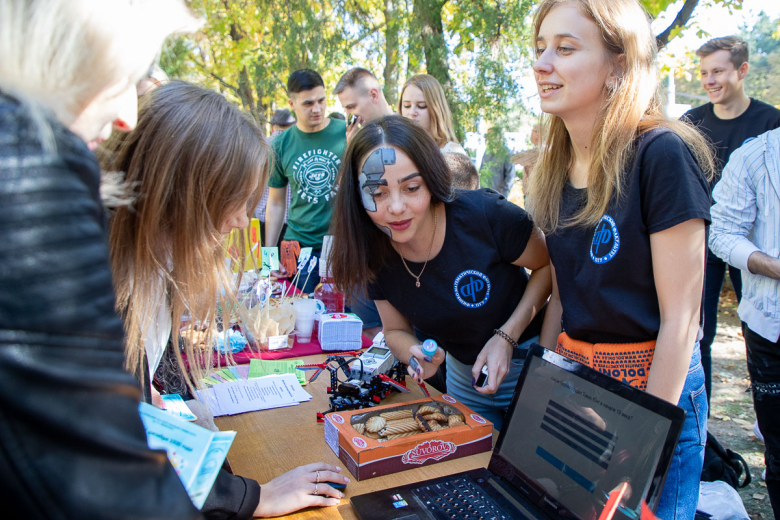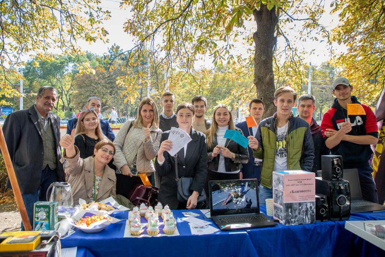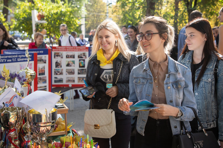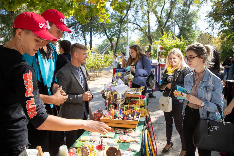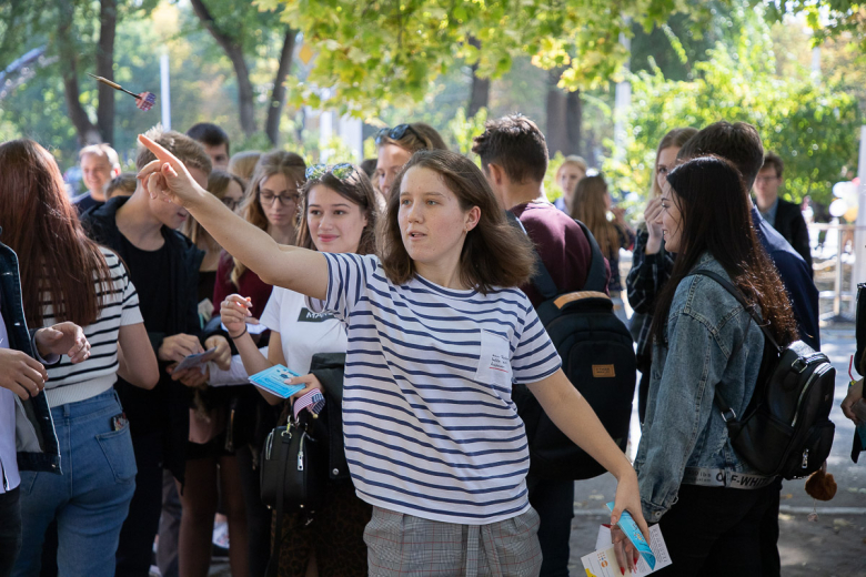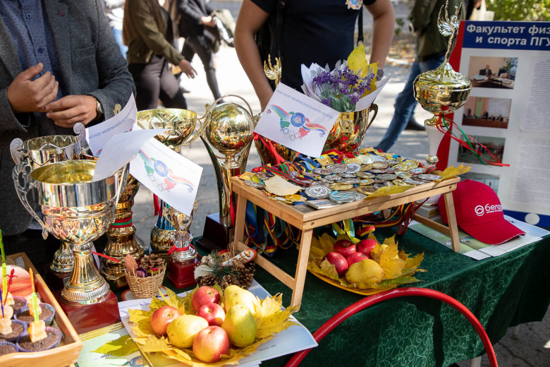Сегодня весь студенческий актив представлял свои факультеты на праздничной ярмарке возле главного корпуса университета. Ребята рассказывали о своих профессиях и приглашали школьников поступать в ПГУ. Идея такого формата ярмарки – более подробное знакомство со всей структурой университета.