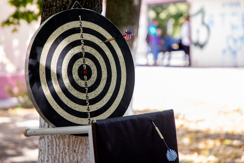 Студенты факультета физической культуры и спорта к своей площадке подошли профессионально. Своим гостям они предлагали игру в дартс, а также сладкую продукцию в форме мячей и других спортивных атрибутов.