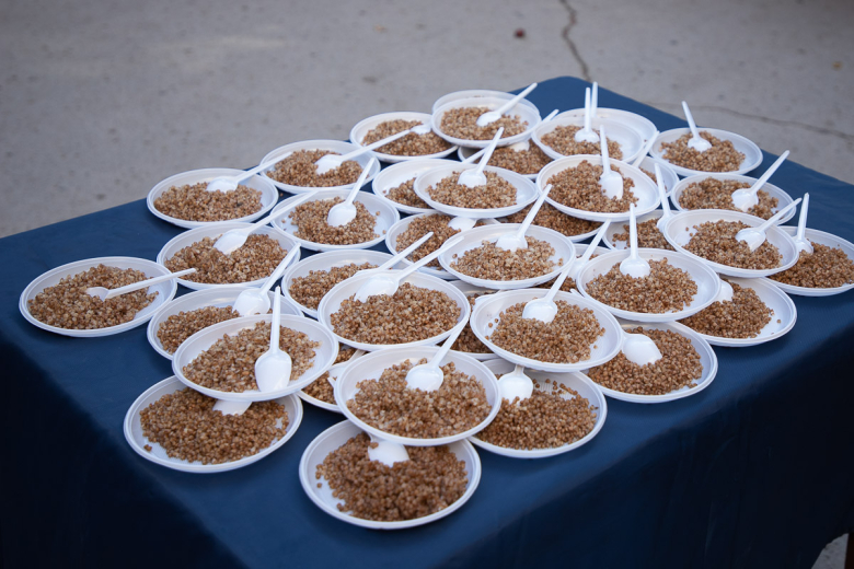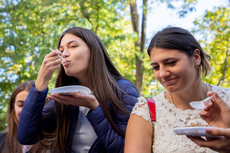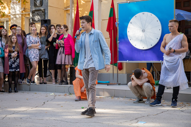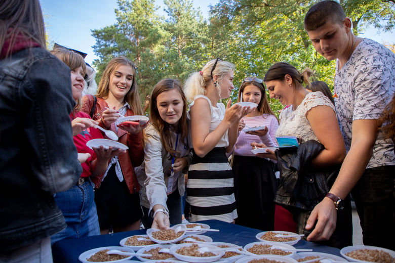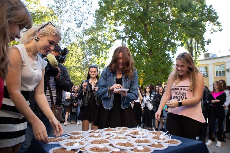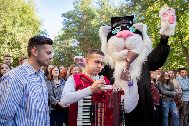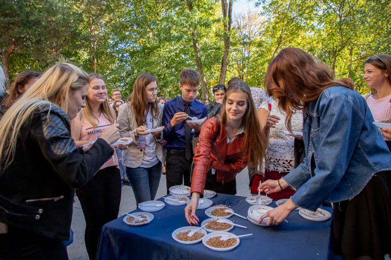 Один из ключевых моментов праздника – посвящение в студенты. По традиции старосты первого курса очищали головы от дурных мыслей, ели гречневую кашу и давали клятву студента. Обещали не прогуливать пары и учиться только на отлично.