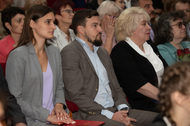 С Днём рождения университет поздравил и президент ПМР Вадим Красносельский. Его обращение зачитала государственный советник президента Анна Волкова. Глава государства в поздравительном адресе отметил, что ПГУ готовит высококлассные кадры новой формации с большим профессиональным и нравственным потенциалом.