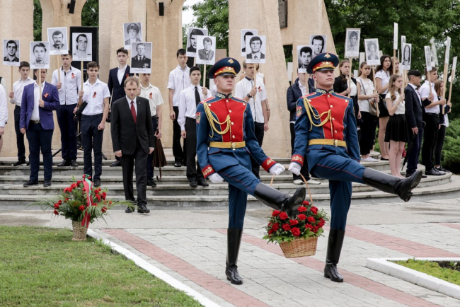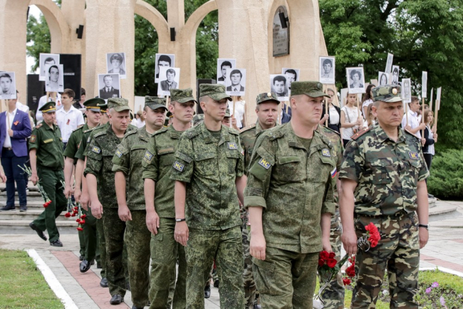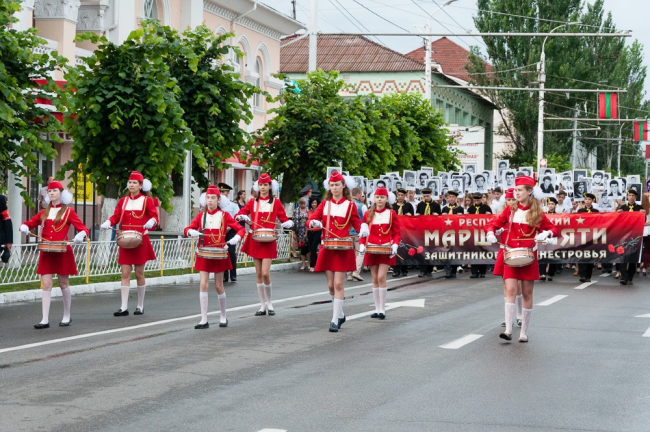 Во главе Республиканского марша памяти по подобию «Бессмертного полка» шли юнармейцы и кадеты с портретами погибших защитников Бендер. Колонна прошла по центру города от Площади Освобождения до Мемориала Памяти и Скорби, где состоялся митинг-реквием.