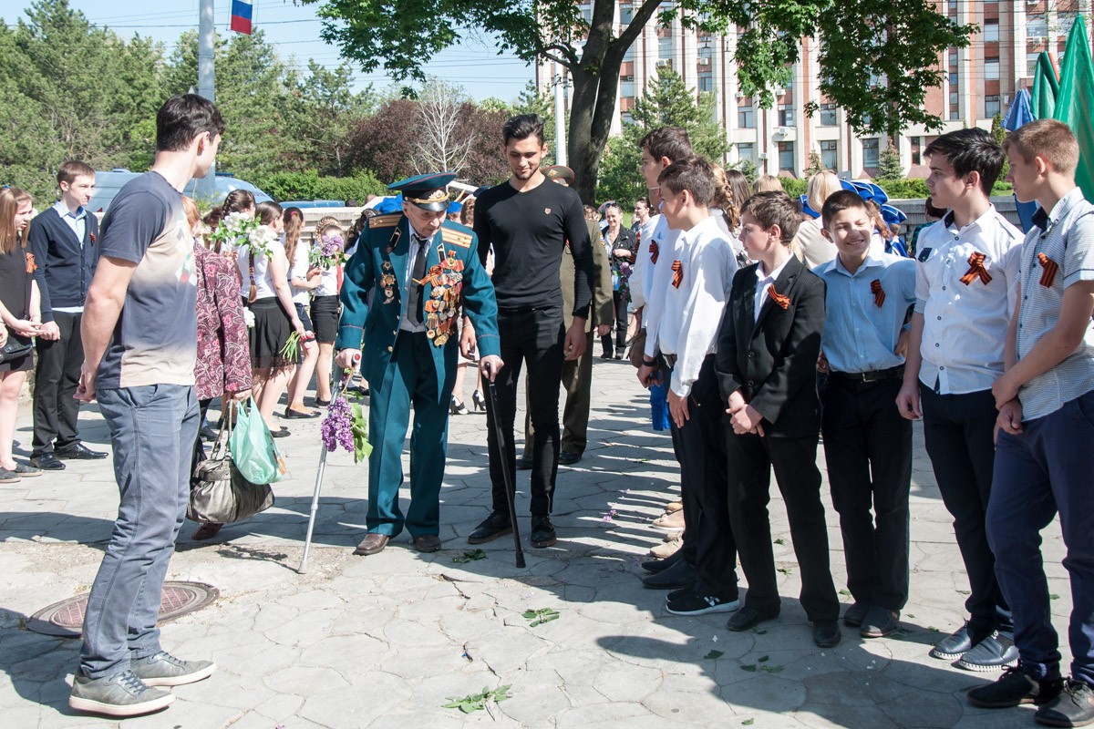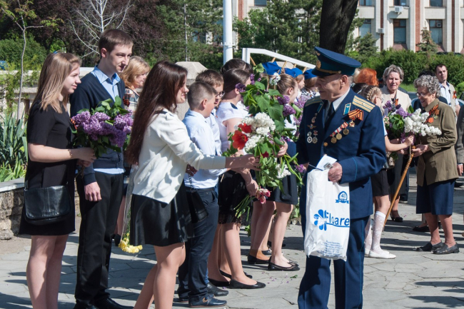 Ветеранов встречали учащиеся различных школ города. Им вручали букеты цветов. Праздничное настроение создавали вокальные и танцевальные коллективы столичных учреждений культуры.
