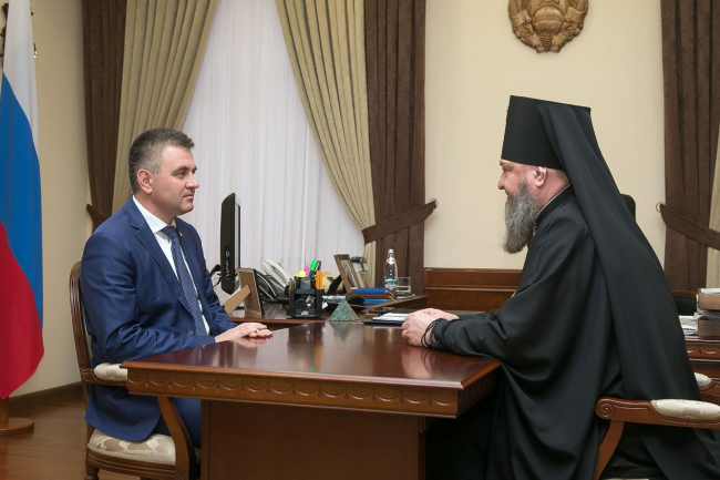 Глава государства выразил благодарность за внимание, оказываемое представителями епархии воспитанникам Тираспольского суворовского военного училища, подчеркнув нерушимость исторических уз армии и церкви. Немаловажным видится Президенту участие священнослужителей в массовых мероприятиях. Такой подход способствует единению общества, уверен Вадим Красносельский. Речь в ходе встречи в рабочем кабинете главы государства шла и о приднестровских храмах. Их количество, как и число прихожан, растет, но многие церкви нуждаются в ремонте.