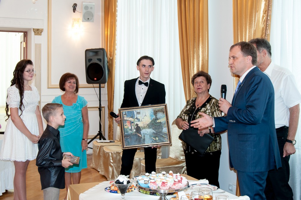 На мероприятии Президенту был преподнесен личный подарок от выпускника художественной школы, финалиста и победителя многих международных конкурсов Станислава Черногора. Главе государства была передана картина «Осенний экспресс» как символ движения Приднестровья. Памятное фото с запомнившейся школьной линейки по случаю Дня знаний и прошедшего в рамках него телемоста с заместителем председателя Правительства РФ, спецпредставителем Президента России по Приднестровью Дмитрием Рогозиным Евгению Шевчуку презентовал второклассник, ученик столичной гуманитарно-математической гимназии №6 Тимур Кашерин.