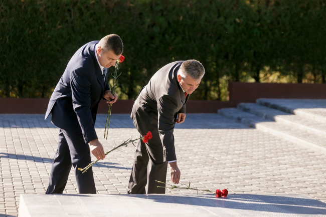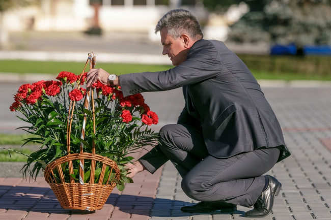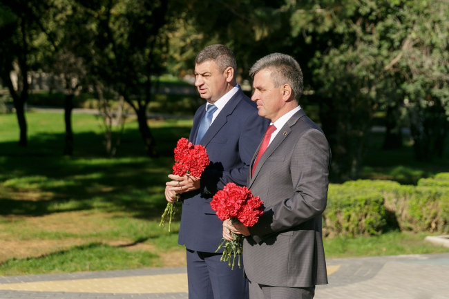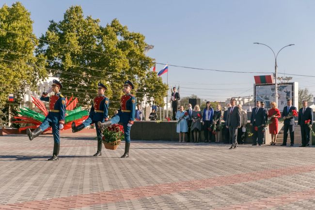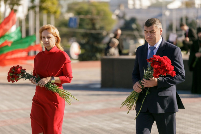 К вечному огню, памятникам и могилам защитников корзину с живыми цветами возложил от имени тираспольчан и всего приднестровского народа Президент ПМР Вадим Красносельский. Участие в торжественном мероприятии приняли также руководители и представители Правительства ПМР, Верховного Совета, местных органов власти и управления, духовенства, сообщает президентская пресс-служба.