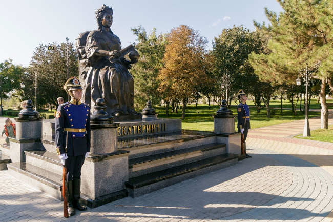 Глава государства также возложил цветы к постаменту памятника Екатерине II и великому полководцу генералиссимусу Суворову – основателям города. Это новая для тираспольчан традиция.