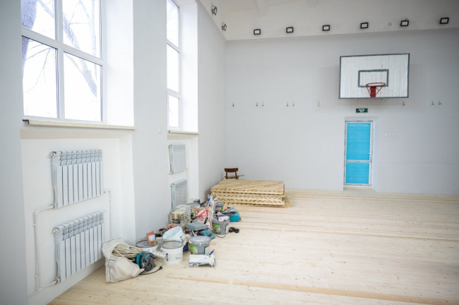 Спортзал сегодня капитально ремонтируют. В 2018-2019 годах над ним, актовым залом и переходной галереей провели кровельные работы, сейчас приводят в порядок помещение для занятий физкультурой, площадь которого порядка 150 квадратов.