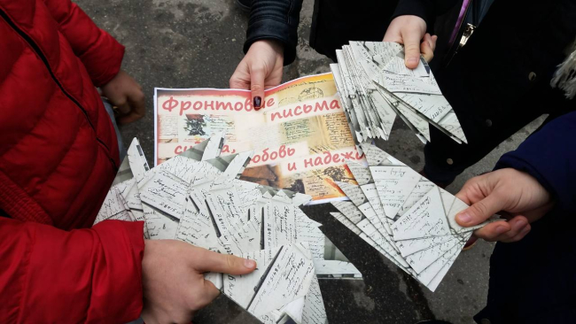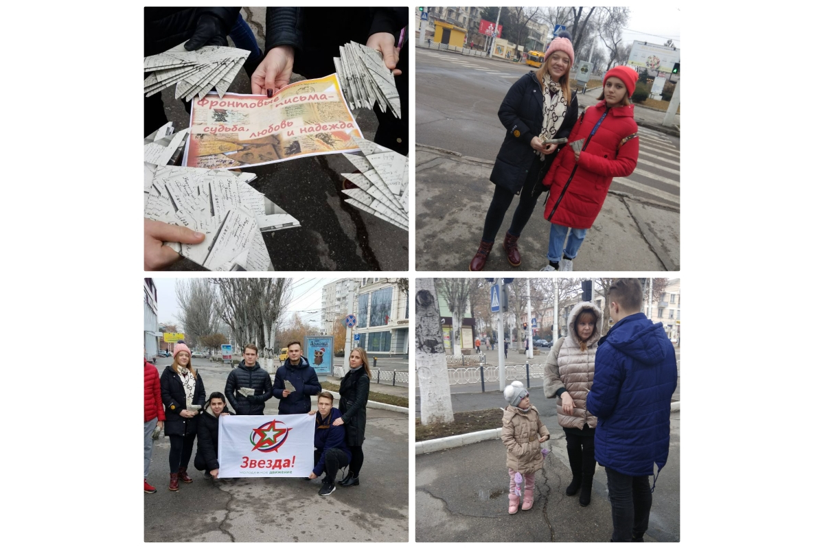 В такой памятный день активисты молодежного движения «Звезда» вышли на улицы, площади и скверы нашего города, волонтеры раздают жителям листовки в виде солдатских (фронтовых) писем-треугольников с информацией о герое и его подвиге.