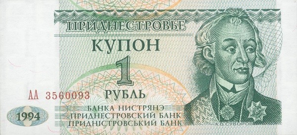 17 августа 1994 г. - Приднестровье вводит в обращение собственную валюту. После создания ПМР в качестве денег использовались рубли СССР и Российской Федерации образца 1961-1992 годов со специальной зубцовой маркой с номиналом и портретом А. Суворова. В 1994 году вводятся приднестровские рубли. Их курс составил 1 новый рубль к 1000 старых. В течение последующих лет высокий темп инфляции привел к увеличению количества нолей на приднестровском рубле.