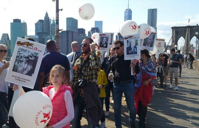 Колонна начала движение от одной из пристаней на побережье реки Гудзон и прошла вдоль западного берега Манхэттена порядка 1,5 км. В шествии в одних рядах с выходцами почти из всех бывших советских республик шли и несколько десятков рядовых американцев, которые также несли в руках портреты родных, служивших на фронтах Второй мировой войны.