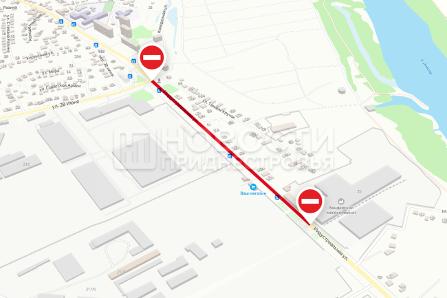 С 27 октября в Бендерах перекроют дорогу по улице Индустриальной