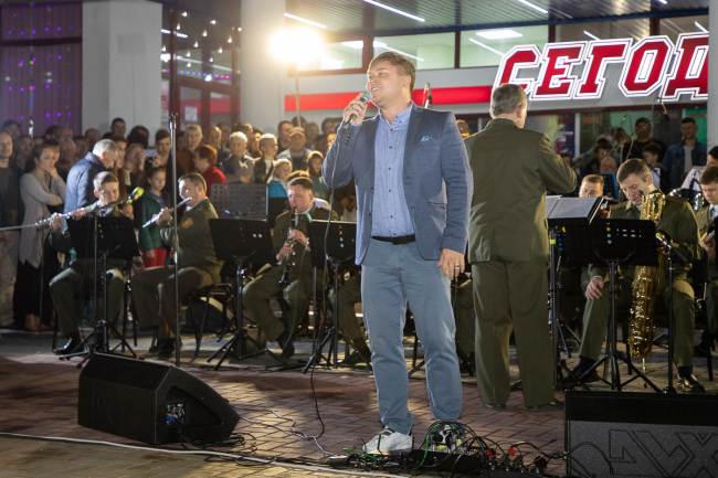 Ставшие уже традиционными вечерние концерты у фонтана всегда собирают много зрителей. Сегодняшний концерт не был исключением – сотни горожан не только наслаждались замечательным исполнением известных композиций солистами оркестра, но и подпевали, и танцевали.