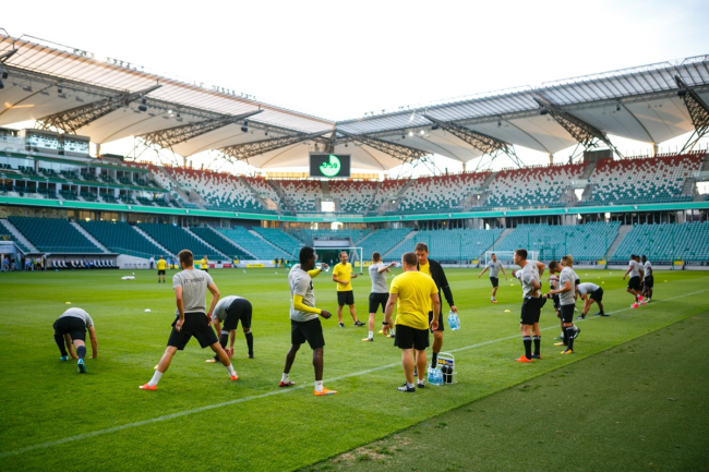 Сейчас футболисты готовятся выйти на стадион Войска Польского. С варшавским полем тираспольчане познакомились ещё вчера — прошла открытая тренировка и предматчевая пресс-конференция.