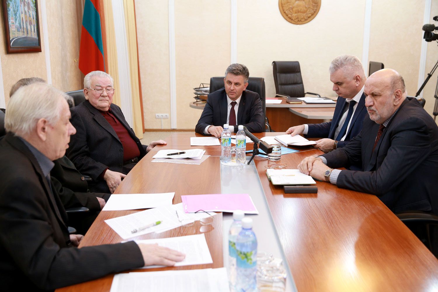 Тирасполь, 28 февраля. /ИА "Новости Приднестровья"/. Незаконный отвод земель, произошедший с 1 января 2012 по 31 декабря 2016 года, глава государства Вадим Красносельский обсудил сегодня с членами Совещательного собрания (Анатолием Белитченко, Владимиром Емельяновым и Владимиром Рыляковым), министром сельского хозяйства и природных ресурсов Ефимием Ковалем и прокурором ПМР Анатолием Гурецким.