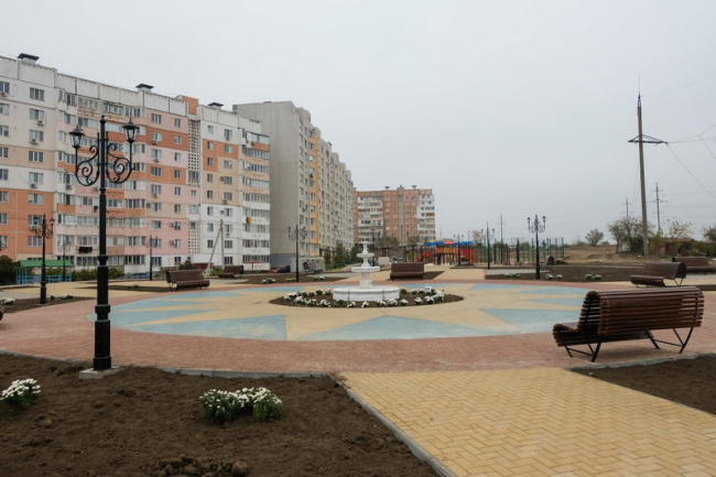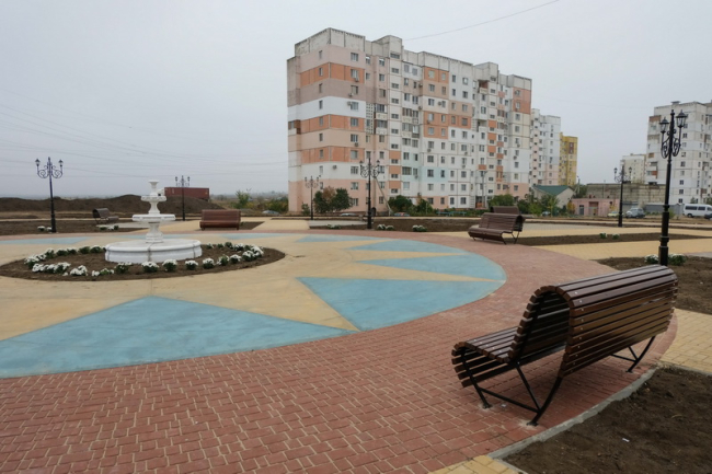 Сейчас зону отдыха из растительности украшают лишь недавно высаженные хризантемы. Планируется, что там, как и на набережной, вскоре появится газонное покрытие.