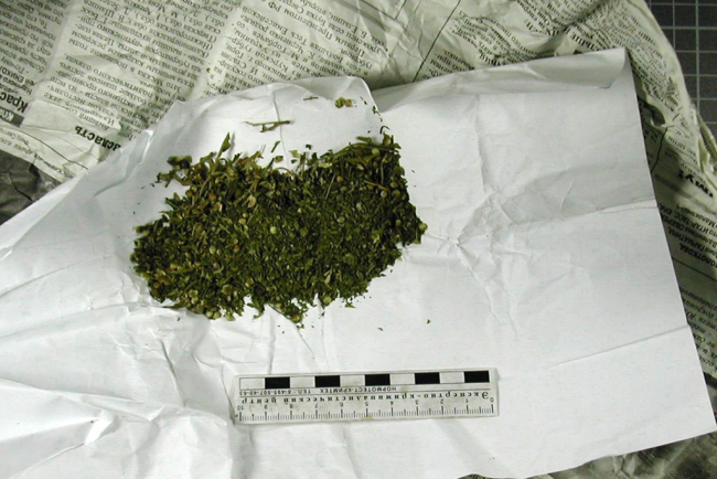 При осмотре жилья на балконе милиционеры обнаружили полиэтиленовую бутылку, приспособленную для курения наркотика, и жестяную банку с двумя свёртками. В них находилась высушенная измельчённая растительная масса, по внешнему виду и запаху похожая на марихуану. Протрезвев, мужчина сознался, что в свёртках — конопля для личного употребления.