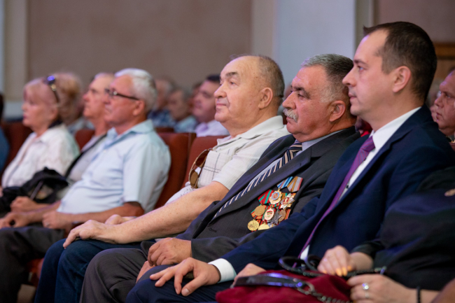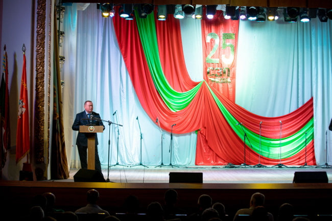 Для членов тираспольского Союза защитников Приднестровья красочные хореографические номера и вокальные композиции подготовили ведущие артисты Городского дворца культуры. Представители исполнительной и законодательной власти отметили защитников, многие из которых до сих пор работают на предприятиях Приднестровья, госнаградами.