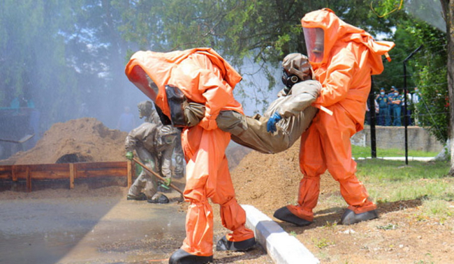 По легенде они ликвидируют залповый выброс ядовитого вещества, который произошёл при падении и разгерметизации контейнера с хлором