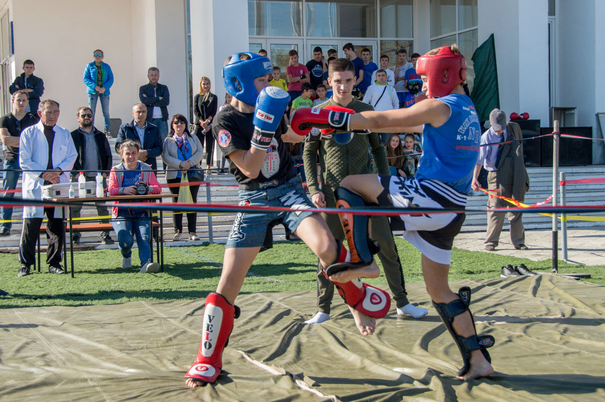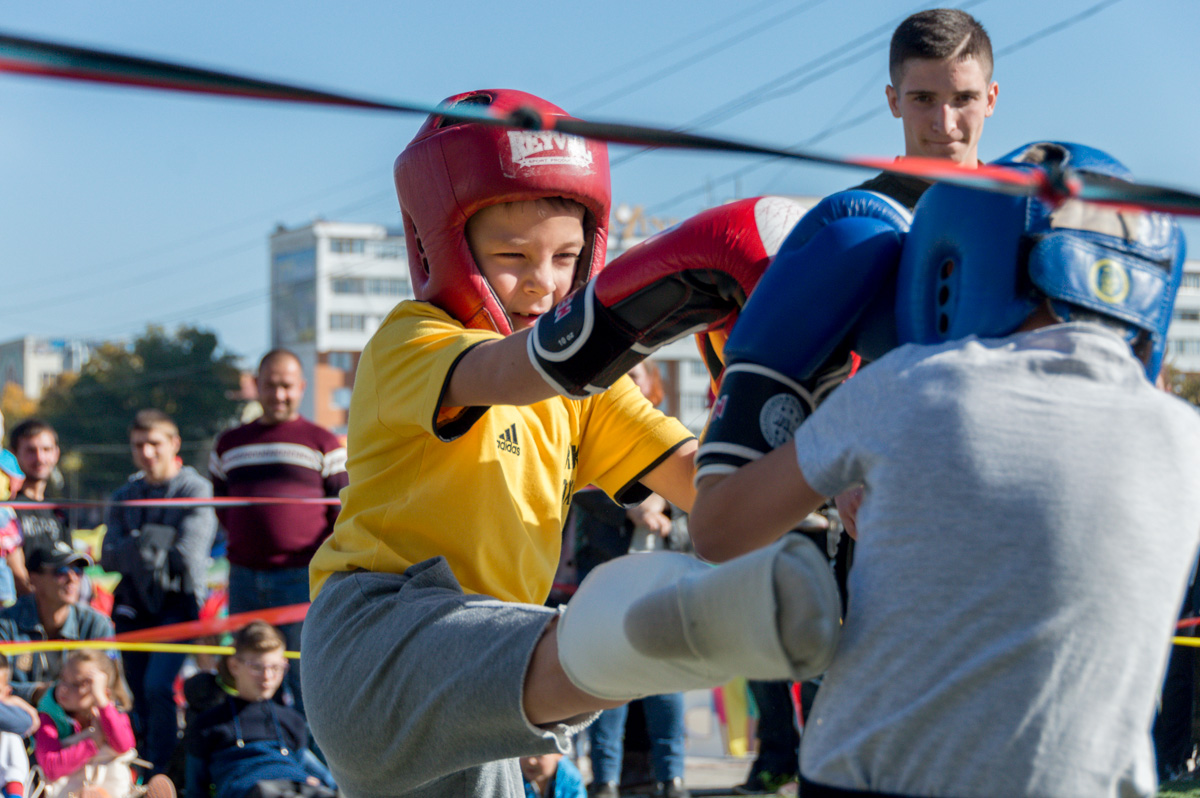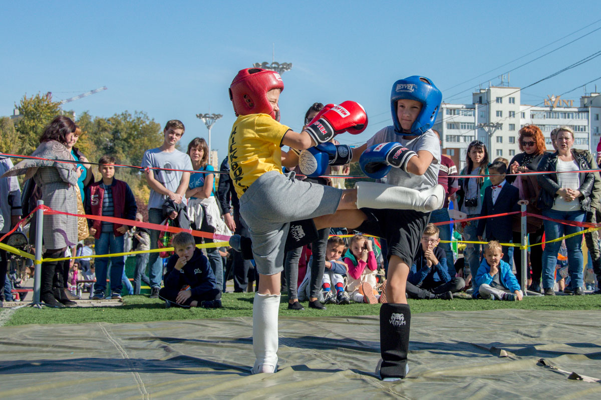 Попробовать вызвать на дуэль соперника смогли все желающие: фехтование велось на специальных «мягких» шпагах. А вот по-настоящему посоревноваться за звание лучших были настроены самые маленькие спортсмены – кикбоксеры вели бой не на жизнь, а за победу.