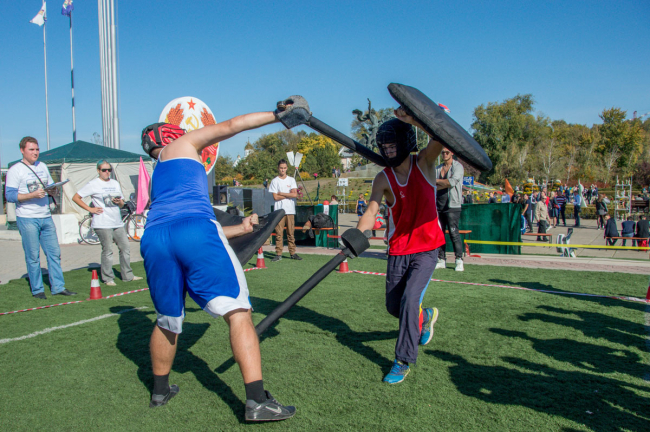 Вмиг город стал эпицентром спортивных действий. На площадках проходили соревнования по историческому фехтованию, всевозможным видам единоборств и даже национальной борьбе «трынта».